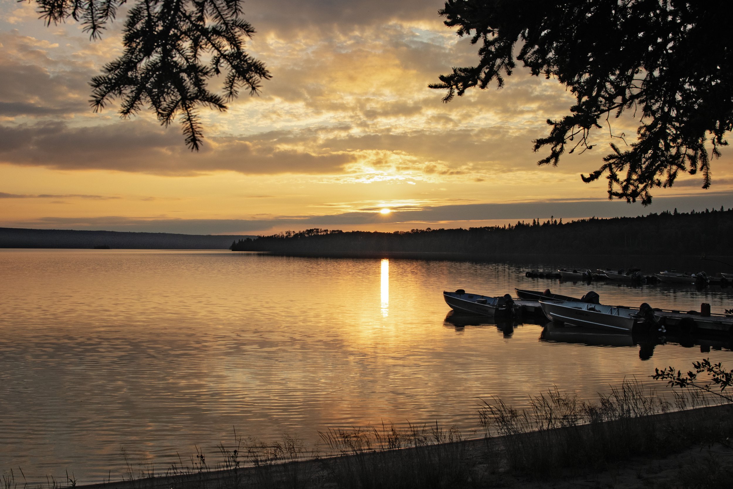 But Cat Island is more than just the fishing. Another moment she captured? A black bear swimming calmly across the water. Wildlife encounters like that aren’t staged or planned- they’re simply part of being immersed in true wilderness. Gitty’s photos capture the peaceful stillness the lodge has to offer perfectly- the wildlife, the dock stretching into glassy water at sunset, and boats resting quietly after a full day on the lake.