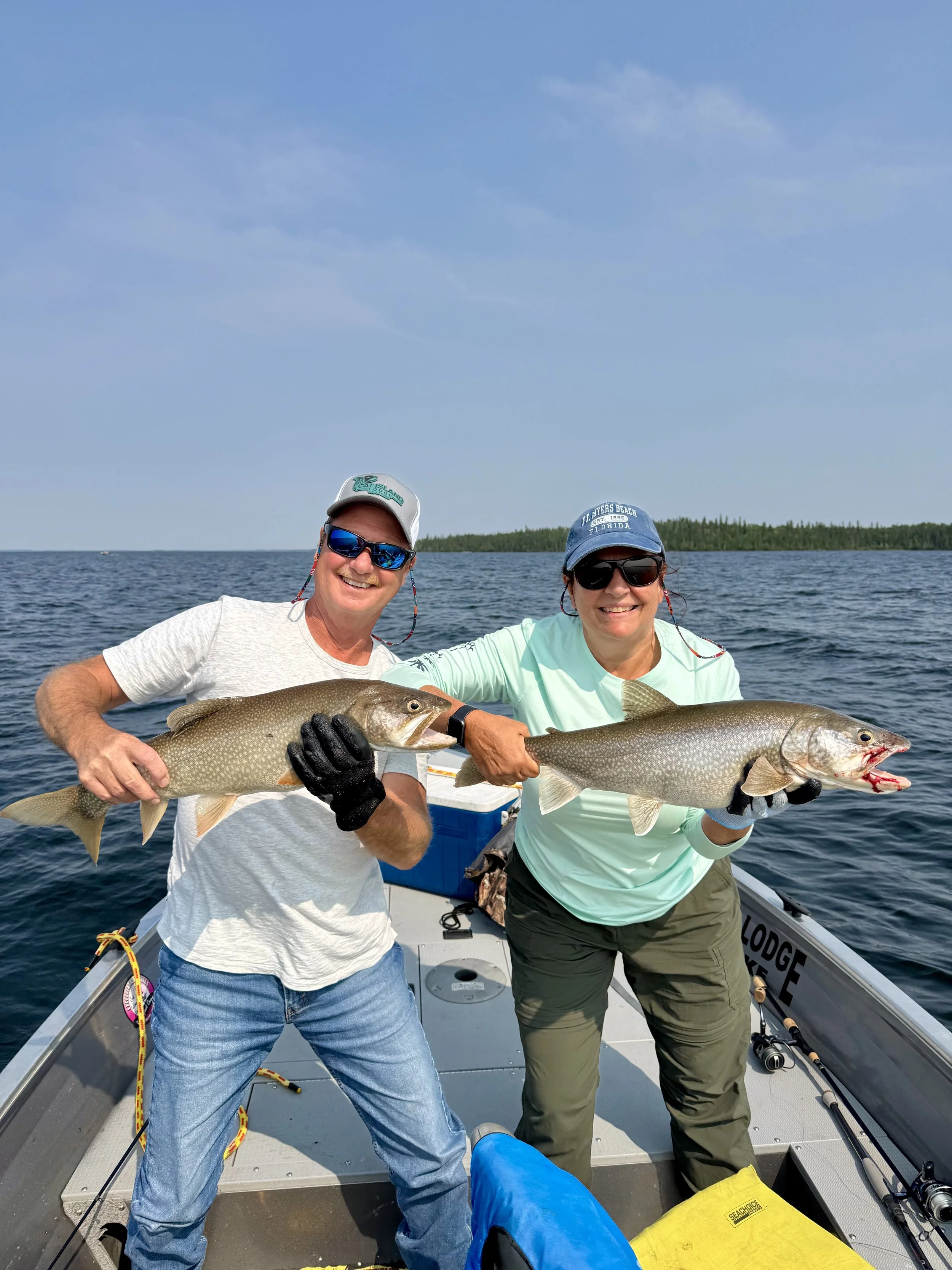 Out on the water, the fishing delivered in a big way- and the photos she shared say it all. Smiles stretched wide across the bow of the boat, lake trout held proudly against endless Northern Ontario water. The kind of catches you replay in your mind long after the trip is over.